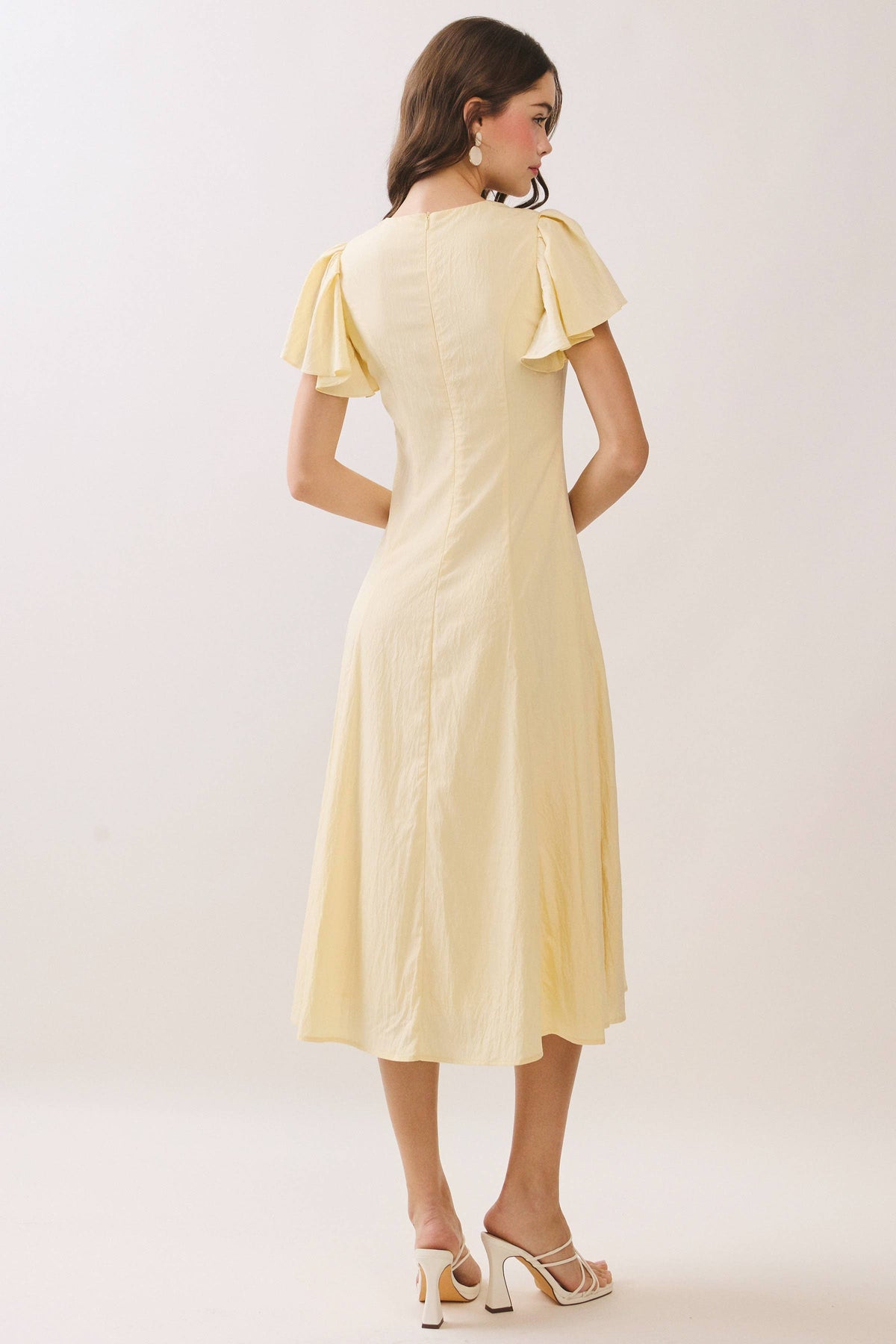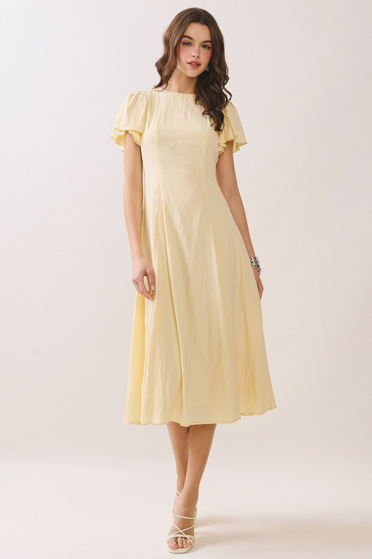 Flutter Sleeve Midi Dress — feminine, flowy, and effortlessly chic.